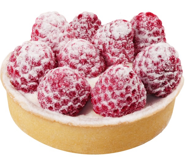 корзиночка из песочного теста, наполненная легким сливочным кремом, украшенная ягодами свежей малины